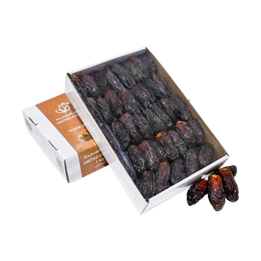 تمر ميدجول الكويتي الممتاز المزروع في الكويت معبأ في علبة 1 كجم. حلو المذاق بشكل طبيعي وطري الملمس ومثالي للاستهلاك اليومي.